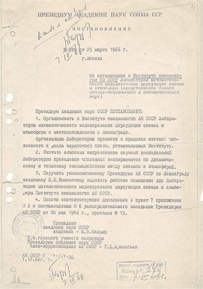 • Создана одна из первых в мире модель циркуляции в системе «океан-атмосфера»;